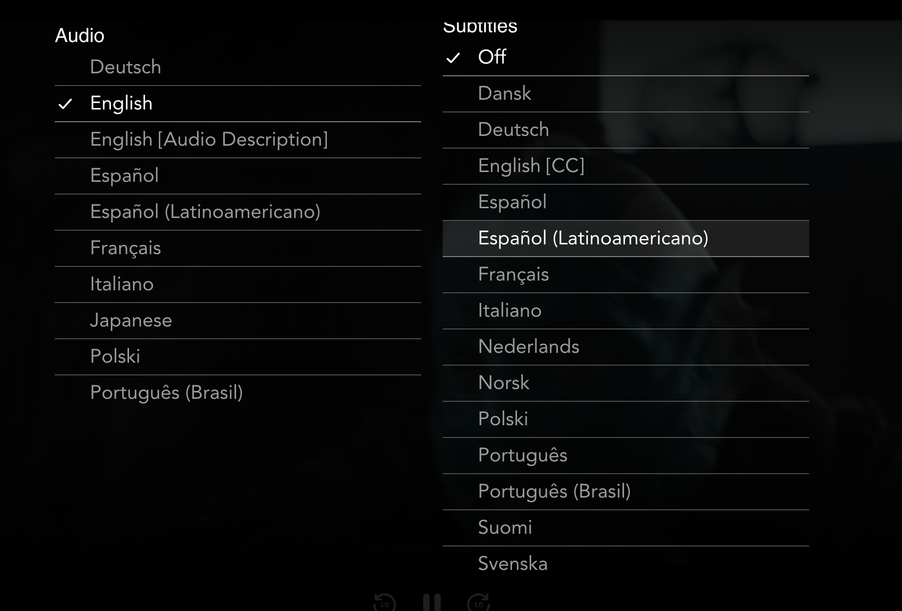 Select your preferred language for subtitles.